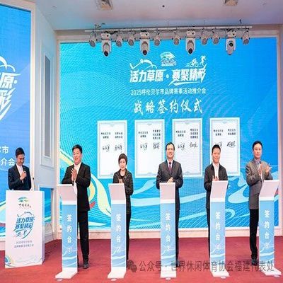 2025年5月9日,世界休闲体育协会主席张守伟受邀出席了在呼伦贝尔市举办的“活力草原·赛聚精彩——2025呼伦贝尔市品牌赛事活动推介会”,并代表协会与呼伦贝尔市体育局正式签署战略合作协议。